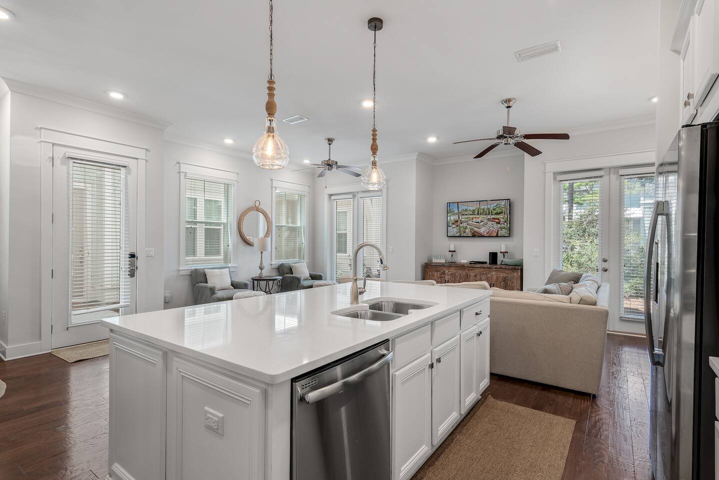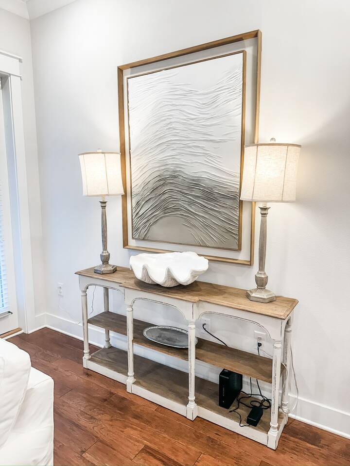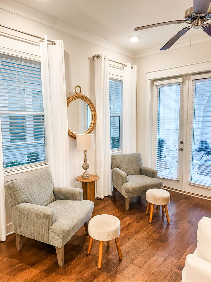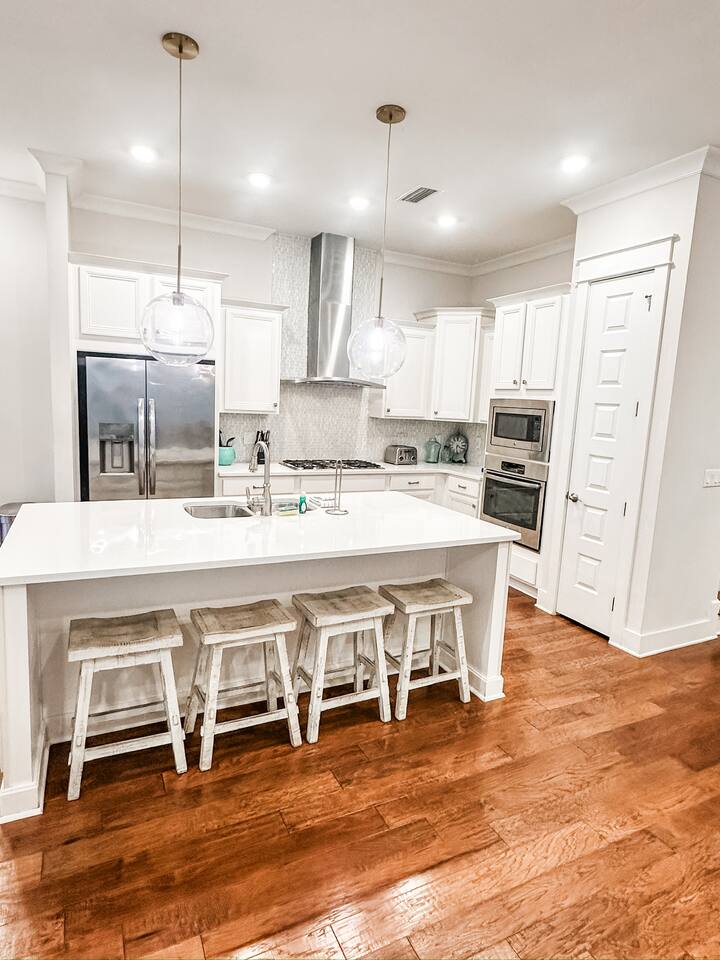 Pearl at Prominence | 30A Beach Retreat With Golf Cart, Bikes & Resort Amenities Pearl at Prominence is a cozy 1,700 sq. ft. Prominence 30A beach retreat featuring 3 bedrooms, 2.5 baths, and everything needed for a relaxing and memorable 30A getaway. Enjoy 1G high-speed WiFi, perfect for streaming, remote work, or staying connected while vacationing near The Big Chill, Seaside, Alys Beach, and Rosemary Beach. With premium finishes, a fully stocked kitchen, a private garage full of beach gear, and thoughtful family-friendly amenities, this home is designed for both comfort and adventure. A 6-seater golf cart and four bikes make exploring the best of 30A easy and fun. ⸻ KEY FEATURES High-Speed Wireless Internet Blazing-fast 1G Wi-Fi for seamless streaming, remote work, and easy connectivity. Spacious & Stylish Living Area Relax in the open-concept living room with plush seating, a sleeper sofa, and a large Smart TV with all major streaming apps. Coastal décor, natural light, and smooth flow into the dining and kitchen areas make this the perfect gathering space. Fully Equipped Kitchen Includes stainless steel appliances, granite countertops, pots, pans, standard spices, utensils, and both a Keurig and classic coffee pot. The large island is ideal for meals and conversation. Luxurious Master Suite Enjoy a calm retreat with a king bed, elegant décor, privacy blinds, and a Smart TV. The en-suite bathroom features a dual vanity, granite countertops, and a walk-in shower. Elegant Guest Bedroom The second bedroom includes a king-size bed, tufted headboard, coastal décor, a Smart TV, and a spacious closet—perfect for couples or additional guests. Fun & Kid-Friendly Bunk Room Perfect for larger families or groups, this oversized bunk room includes six twin beds, a Smart TV, books, toys, and games—an ideal hangout after a day on the beach. Laundry Room Equipped with a brand-new GE washer and dryer for added convenience. Garage With Beach Gear, Extra Fridge & Towels The private garage is stocked with everything needed for smooth beach days: • Six beach chairs • Beach umbrellas • Beach toys • Backpack cooler • 10 beach towels • Full-size additional refrigerator for extra drinks and groceries As an added bonus, the garage also features a brand new foosball table. Baby & Toddler Essentials Includes a baby gate, baby monitor, and pack ’n play for convenience during your stay. 6-Seater Golf Cart & 4 Bikes Included Cruise 30A with ease using the included golf cart and enjoy scenic rides with the four adult bikes. Safety helmets provided. Resort-Style Amenities Enjoy access to Prominence’s resort-style pools, cabanas, and grilling areas. Heated seasonally: • March 1–April 30 • October 1–November 30 • December 21–31 (Schedule subject to change) Minutes From Beach Access Reach 30A’s iconic sugar-white beaches quickly by bike, short drive, or with the golf cart. Prime 30A Location Walk to The Big Chill, and enjoy quick access to Seaside, Alys Beach, Rosemary Beach, scenic bike paths, dining, shopping, and entertainment. ⸻ Explore 30A Bike coastal trails, relax on sugar-white sands, explore boutiques and restaurants, enjoy live music, or visit state parks. Whether you’re looking for adventure or unwinding, Pearl at Prominence is your ideal home base. Book now and start making unforgettable beachside memories!